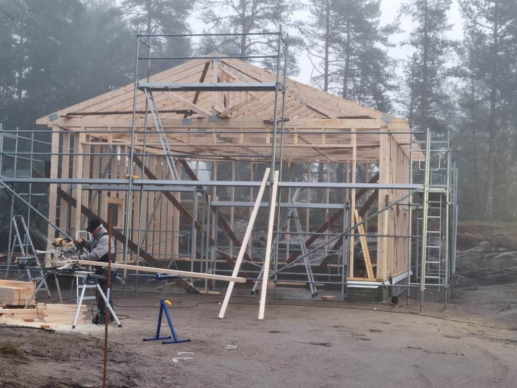 Garasjetak og bindingsverk Sør Beitstad Her har vi hjulpet kunde med bindingsverk til garasje og fått lagt garasjetak. Like Loading...