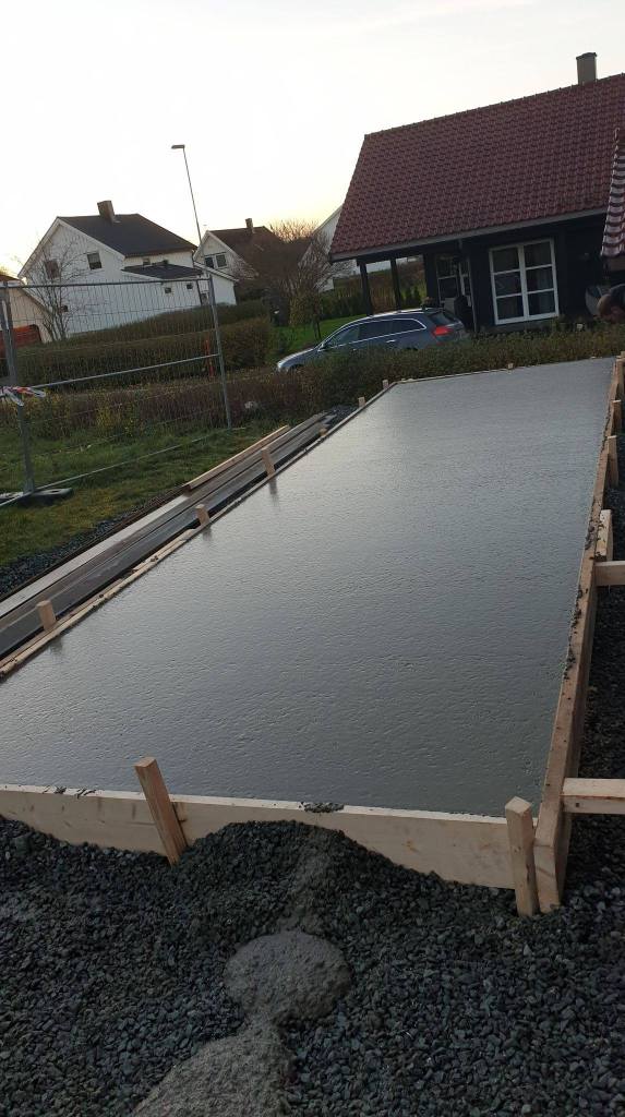 Jobb utført på Levanger i samarbeid med Hofstad Vist Eiendom As hvor vi har støpt gulv til garasje og boder. Retter en stor takk til MK BETONGBYGG AS for lynkurs i forskaling og støping.
