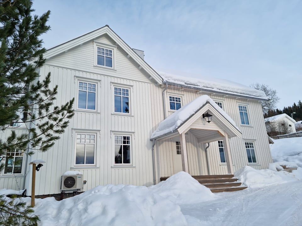 Utvendig rehabilitering og oppretting av vegger Oppretting av vegger, skiftet vinduer etterisolert ny bordkledning og takoverbygg inngangsparti på Sunnan i Steinkjer Flere prosjekter Like Loading...